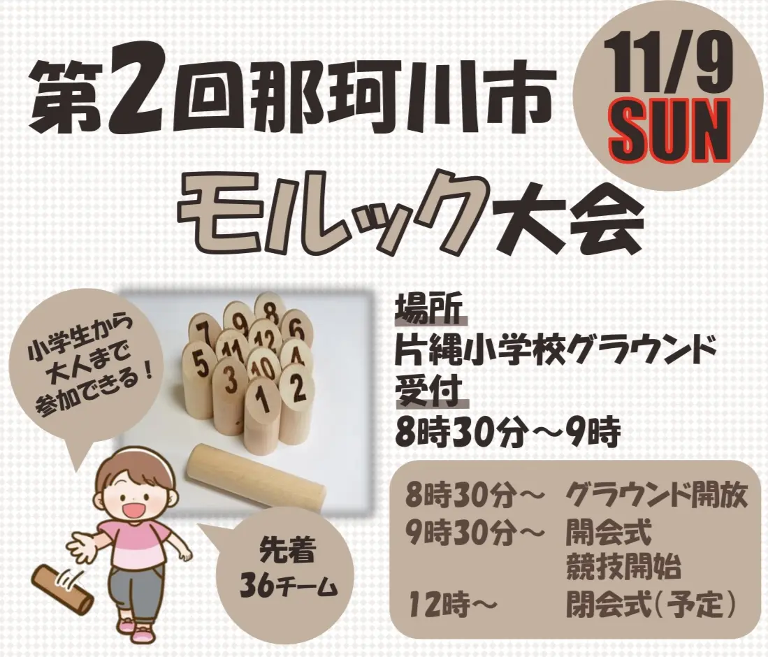 モルックをやってみたいと思われた方も多いのでは?小学生から大人まで参加できるモルック大会が那珂川市で開催予定です。