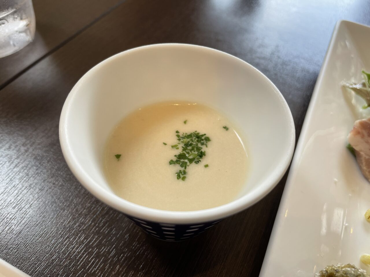 コースに追加したスープは冷製のヴィシソワーズスープ(ジャガイモのスープ)でした。