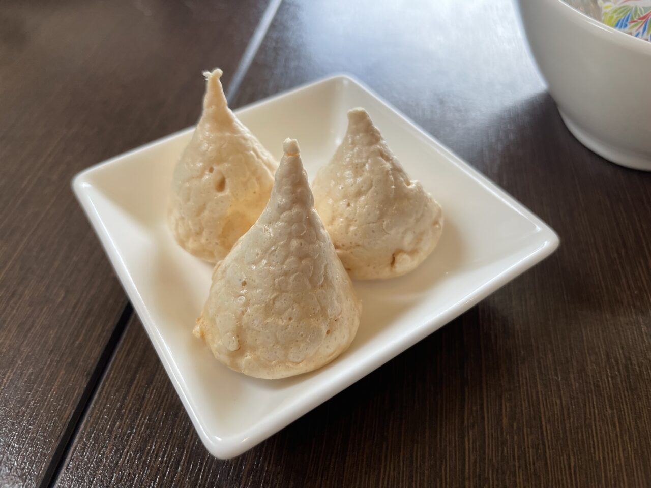 食後のドリンクはホットコーヒーをチョイス。有機栽培のコロンビアコーヒーなんだそうですよ♪コーヒーと一緒にメレンゲ菓子が運ばれてきました。甘くてサクッと食感が良い!コーヒーともよく合いました。