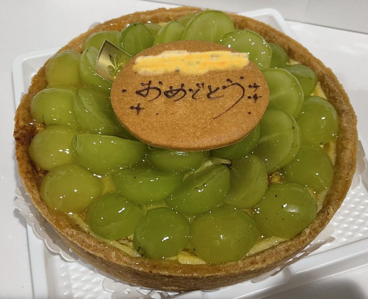 シャインマスカットがびっしりと乗っていて、タルトはしっとりサクッと。カスタードクリームも甘すぎず、かなり甘いシャインマスカットが引き立ちました。