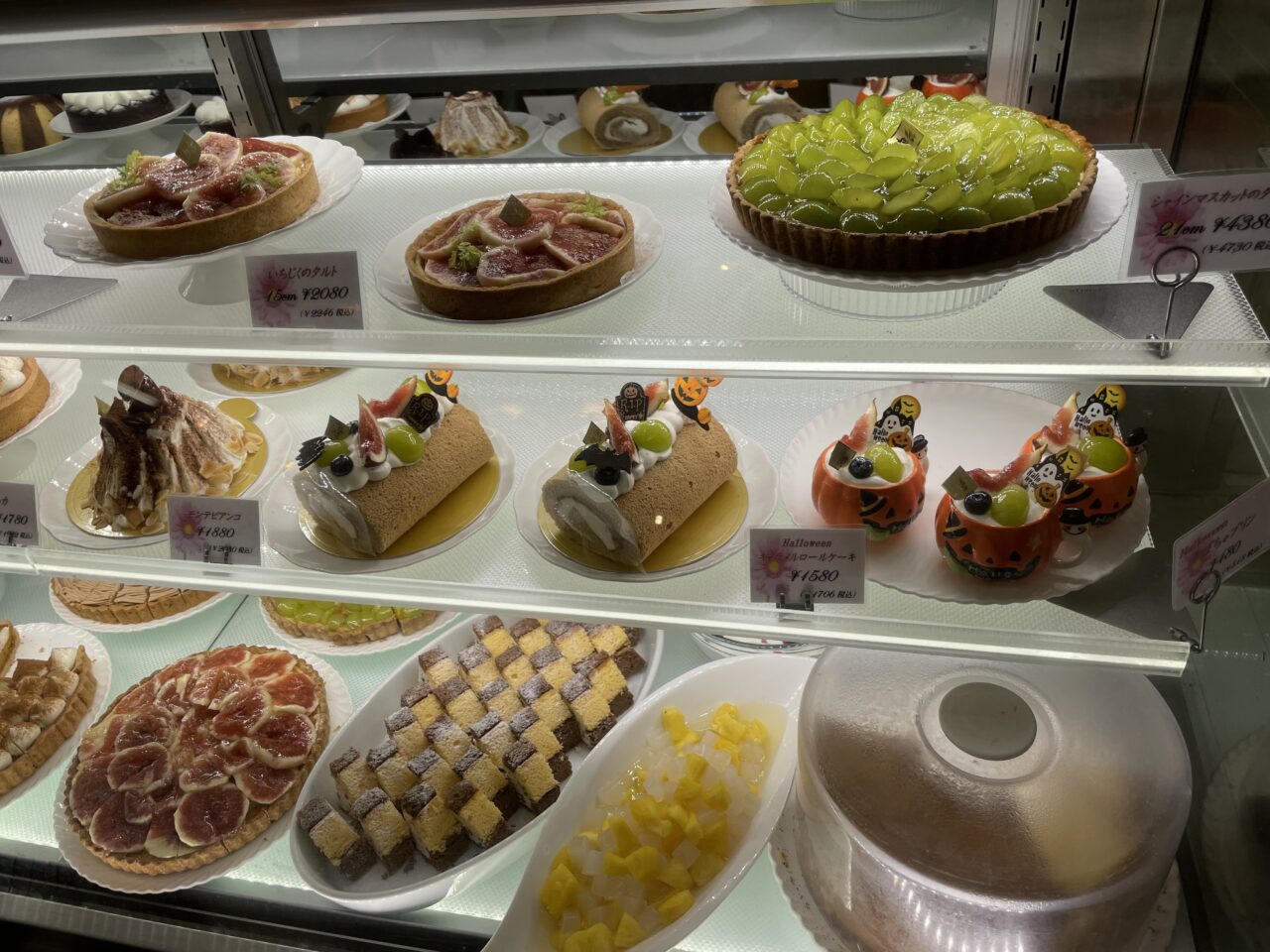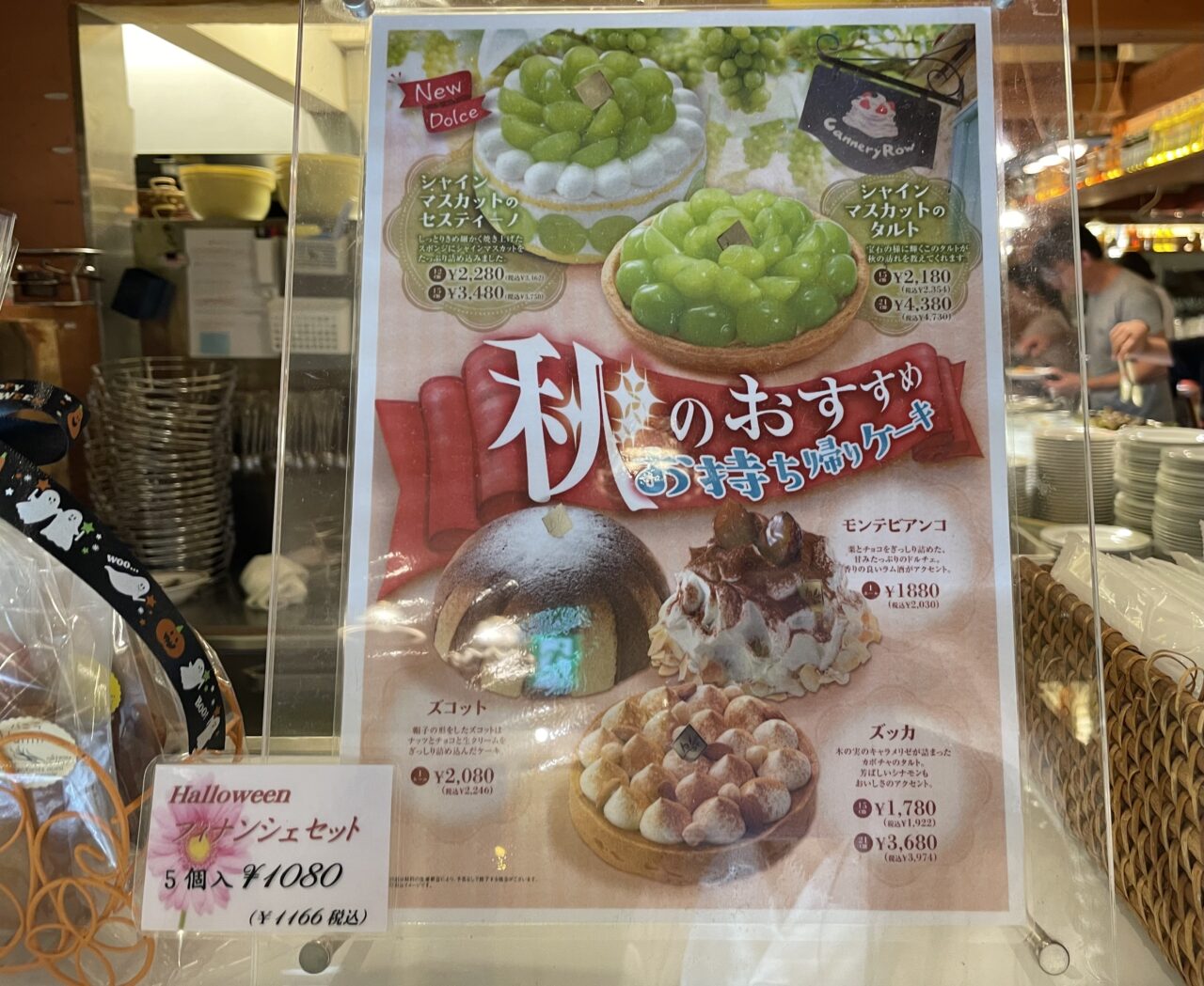 秋のケーキはこちら!シャインマスカットや栗が使われたケーキ。どれも美味しそう♪