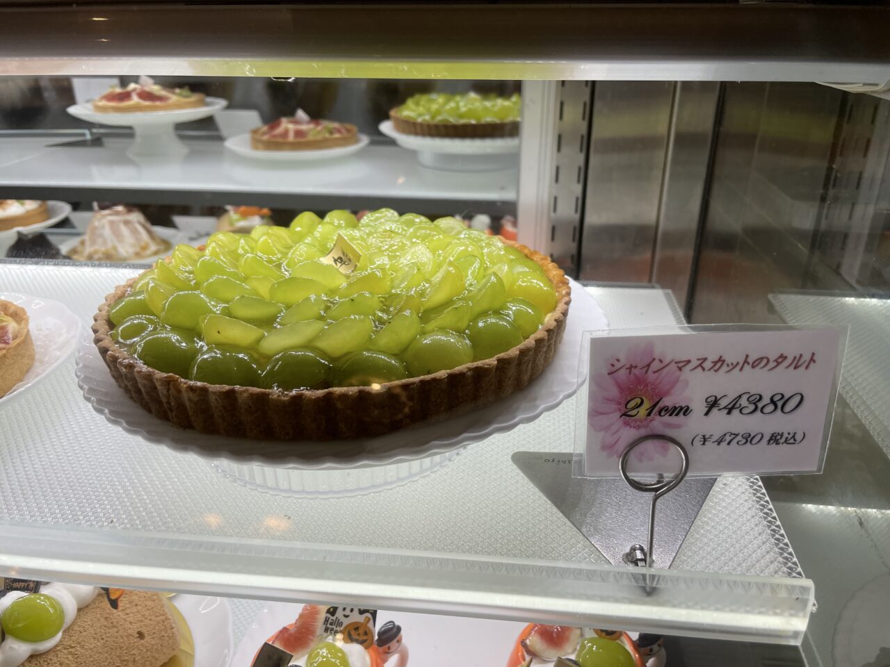 目に留まったのはたくさんのシャインマスカットが乗ったケーキ。21センチは税込4730円ですが、15センチは税込2354円とかなり破格。シャインマスカットだけでも高級なのにこんなにお安くていいのかと思います。