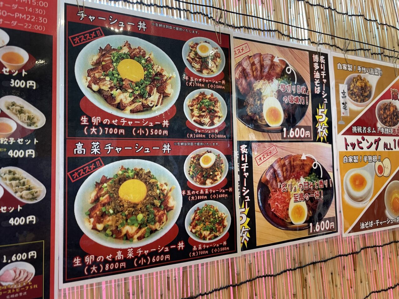 そのほか、トッピングやおつまみ、チャーシュー丼や高菜チャーシュー丼などがあります。