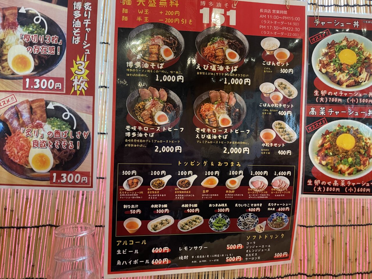 【大野城市】大盛無料が嬉しい~!!白木原駅近くに7月25日にオープンした博多油そば151へ行ってきました。