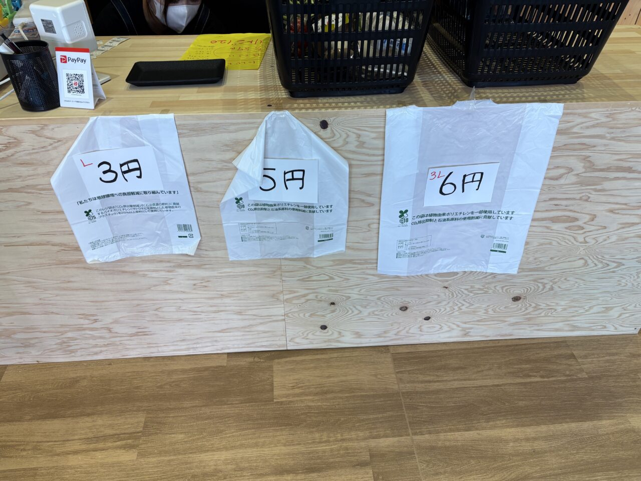 袋はサイズによって値段が変わります。エコバッグを持参すると節約できますね♪