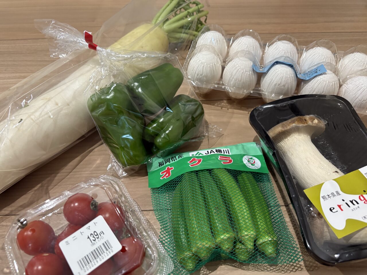 卵が10個で150円(税込 162円)は嬉しい~。ぎりぎり残っていました。しかもMかLくらいの大きさはありましたよ!なすびは残念ながら売り切れていました。