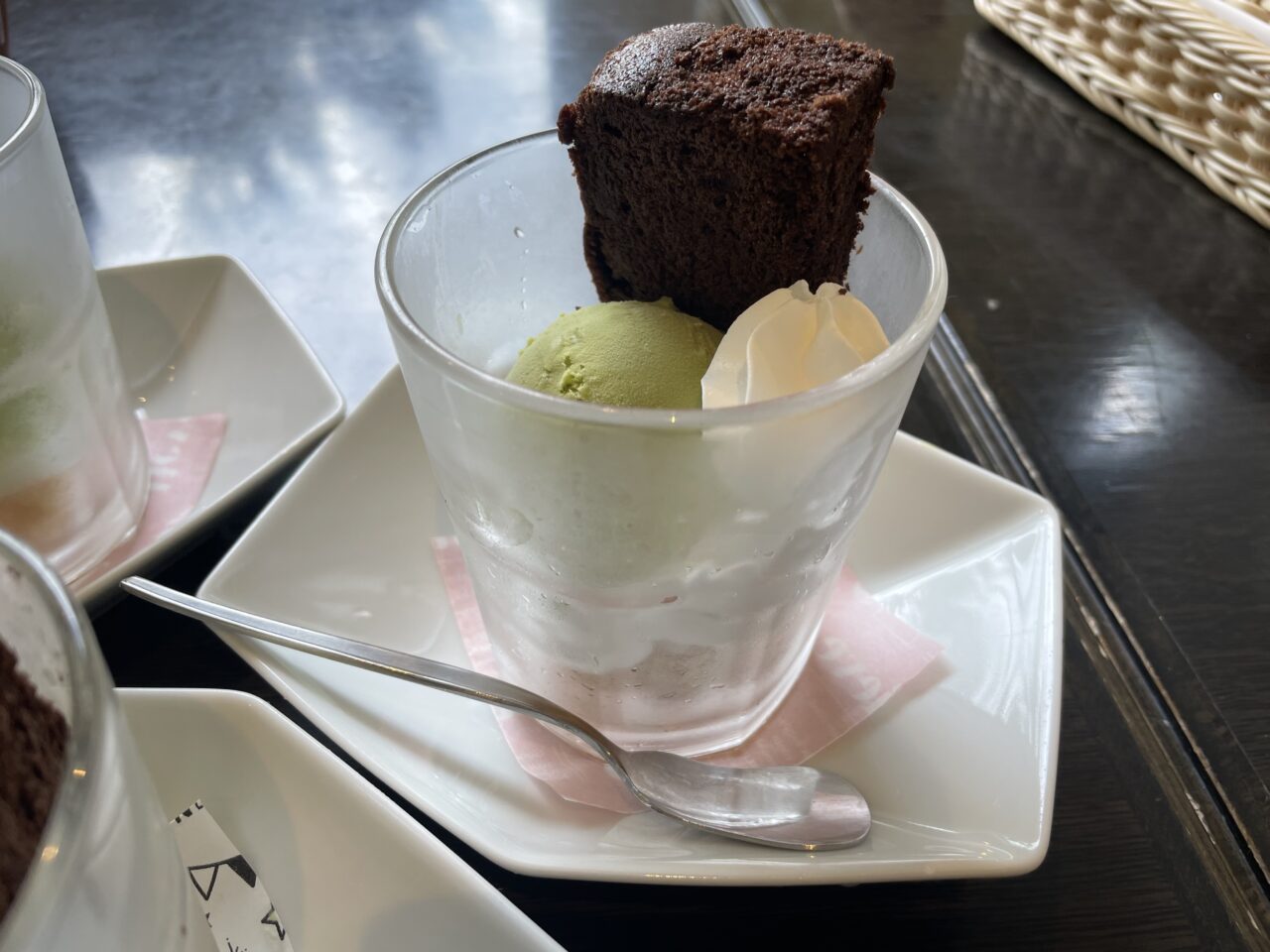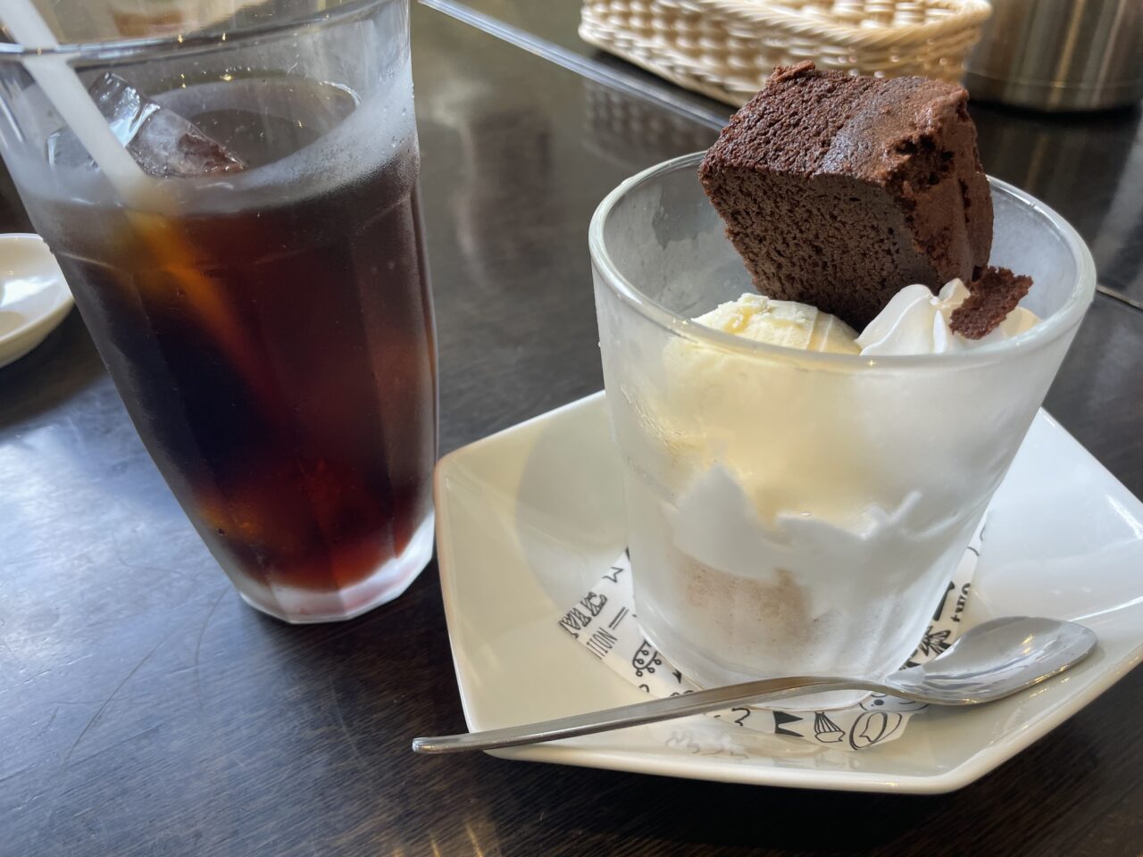 パフェのアイスを選ぶことができて、友人は抹茶アイスをチョイス♪こちらもほろ苦くて美味しかったそうです。アイスコーヒーはセットにすると200円でいただくことが出来ました。たっぷりアイスコーヒーもいただけて大満足。