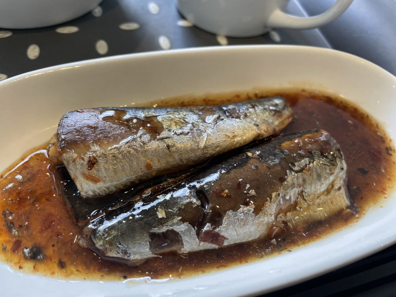 つやつやのイワシの梅煮。程よい梅の酸味が食欲をそそります。臭みもほどんどなく、ご飯にもよく合う味付けでした。