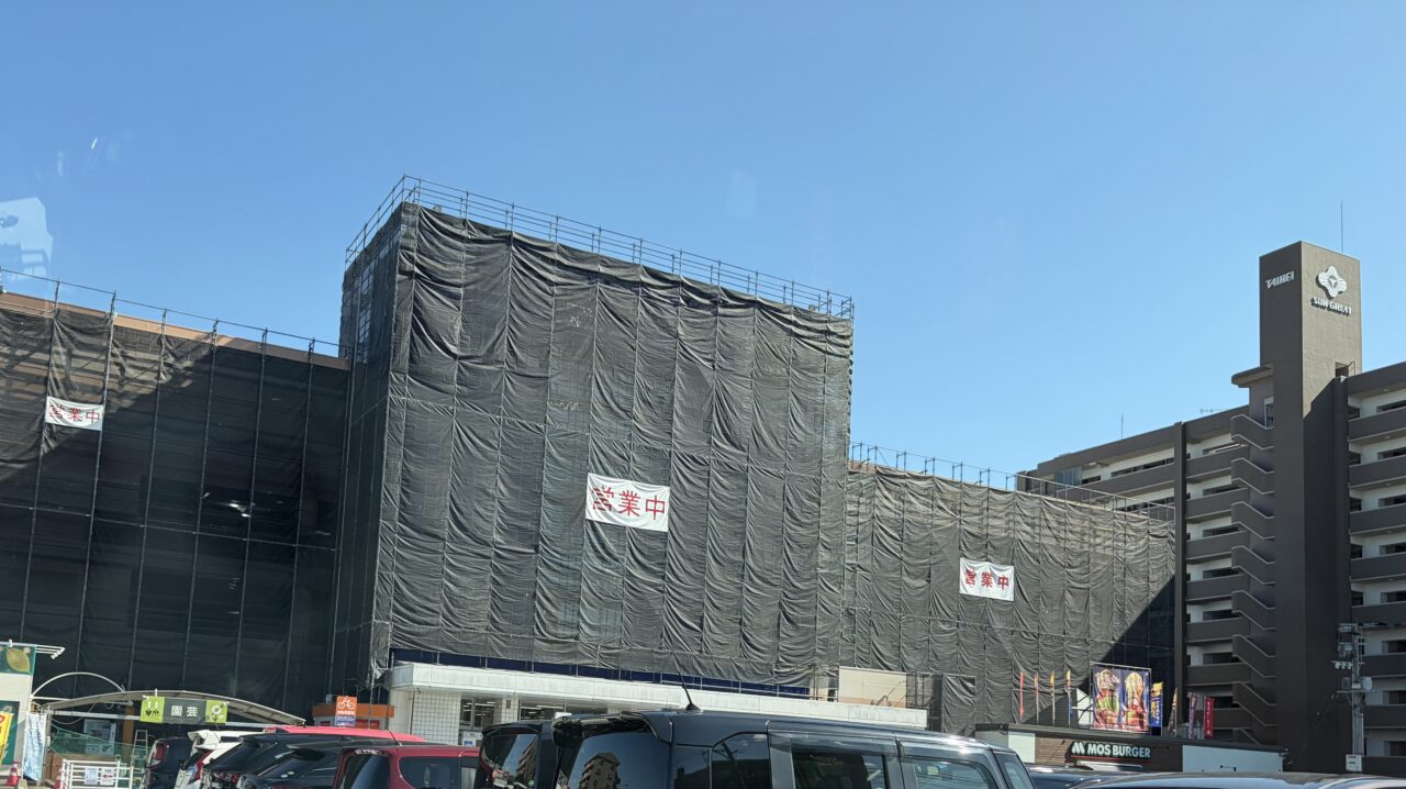 外観が足場に覆われていて普段の姿とは違いますが、現在(2025年10月)は営業中です。