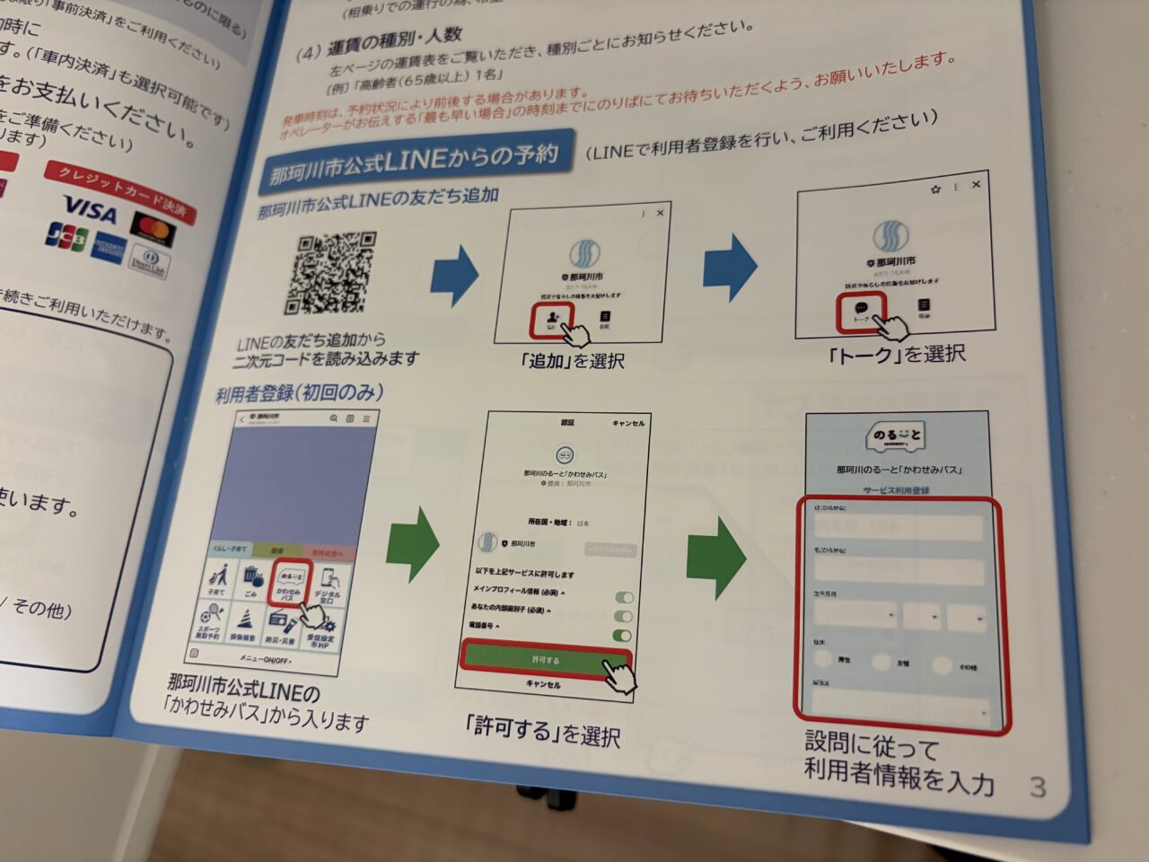 公式LINEのメニューにのるーとかわせみバスというところがあるので、タップすると利用者情報登録画面へ進むようになっています。