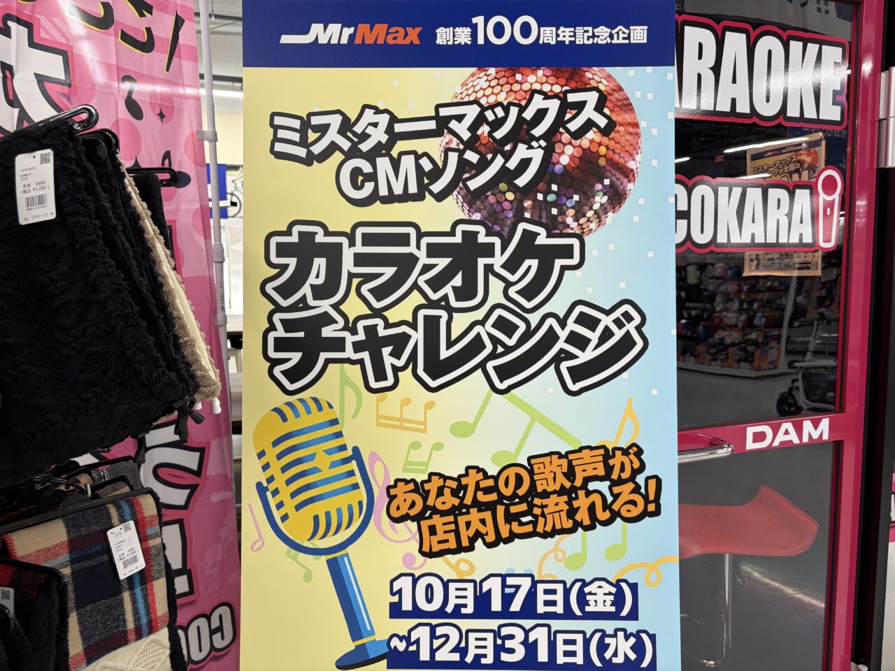 ミスターマックスのCMソング歌って高得点を狙おう~!!あなたの歌声が店内に流れるそうですよ~!
