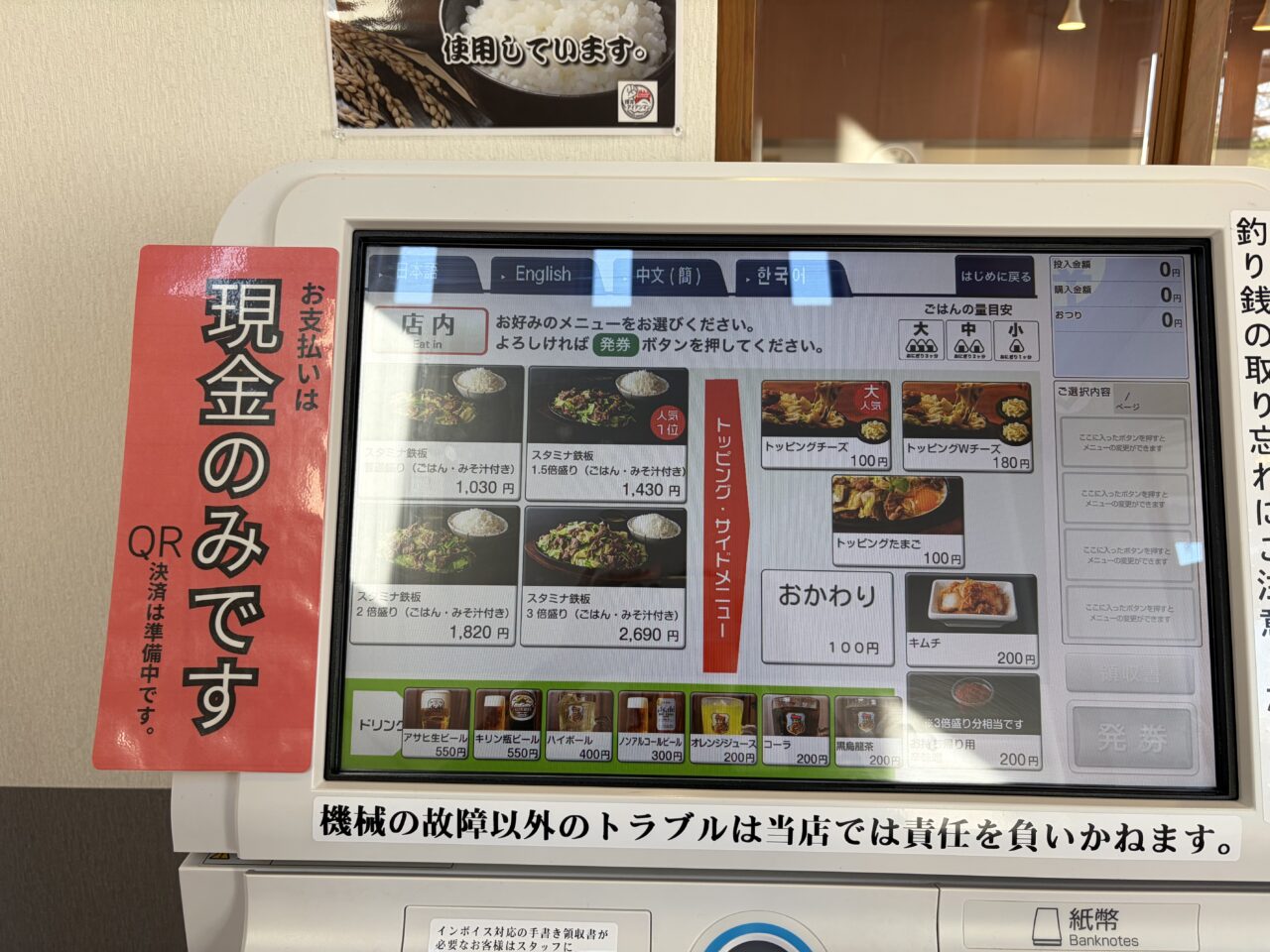 まずは入口にある券売機で食券を購入。
