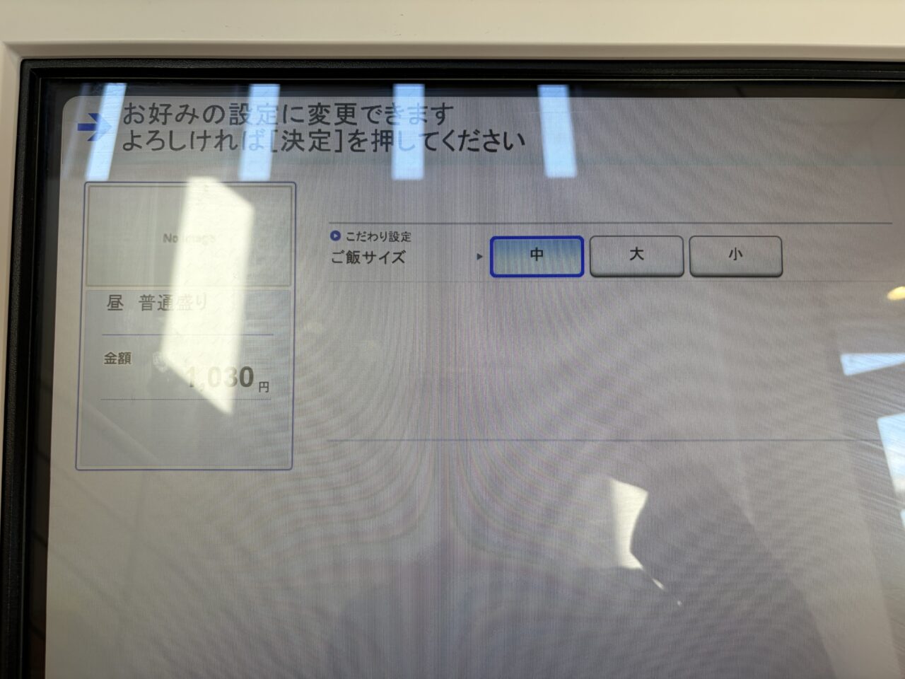 ご飯の量は追加料金なしで大盛にもできましたが、食べ切れなかったらいけないので、中盛をチョイス。