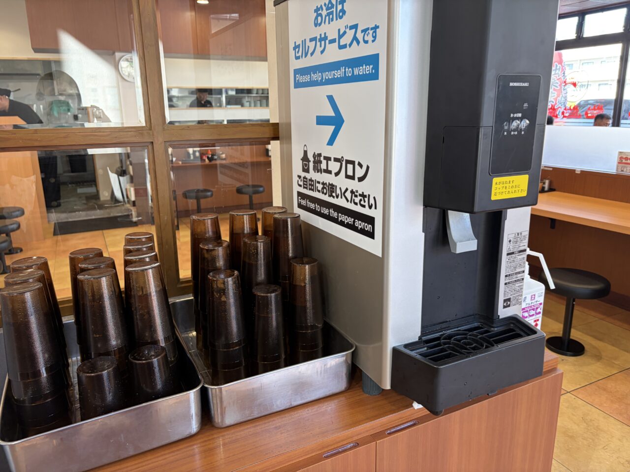 券売機の横にお冷があるので、セルフサービスで。