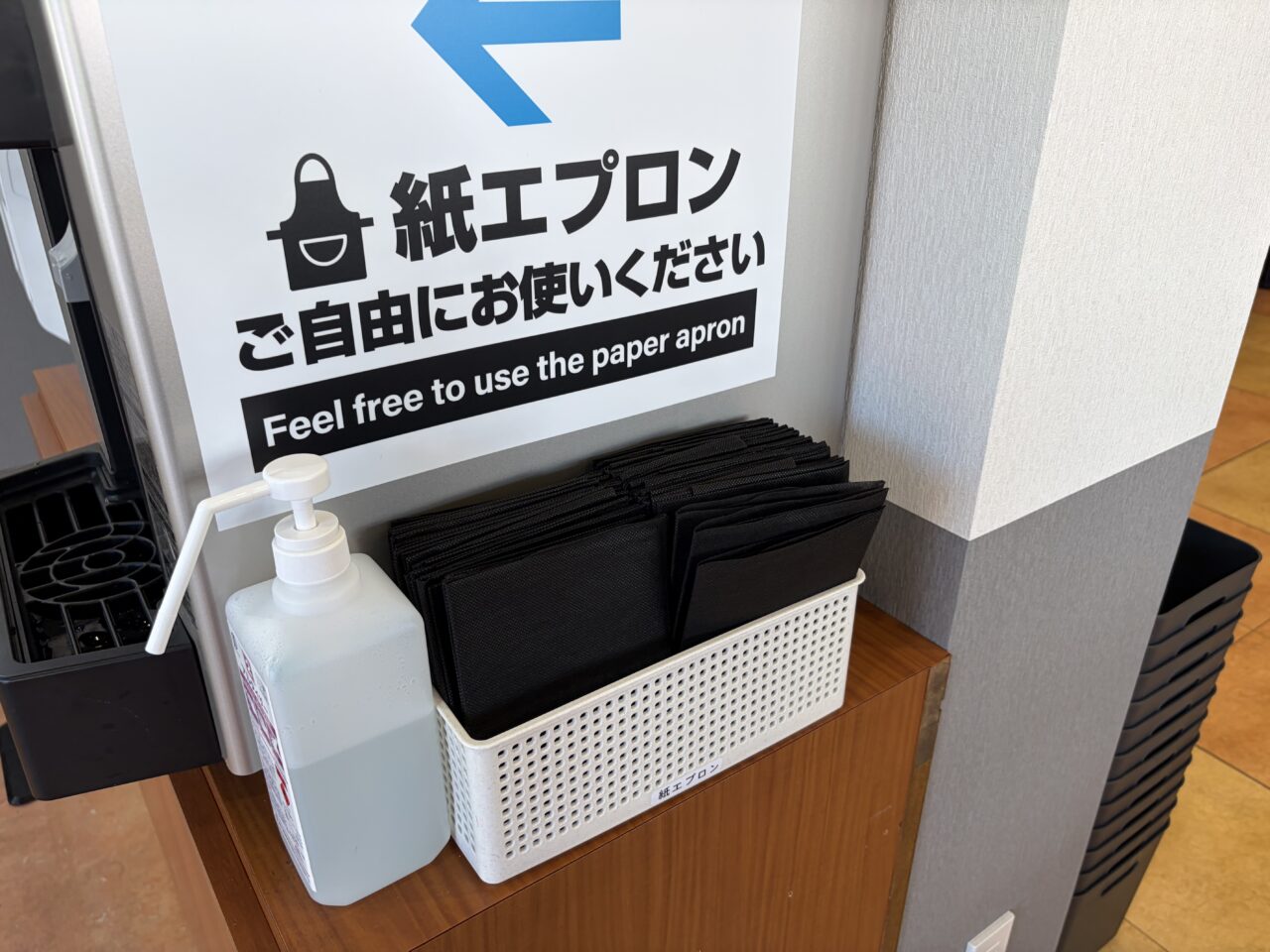 紙エプロンのサービスもあります。結構食べているときに飛んで洋服を汚してしまいますので、嬉しいサービスです。