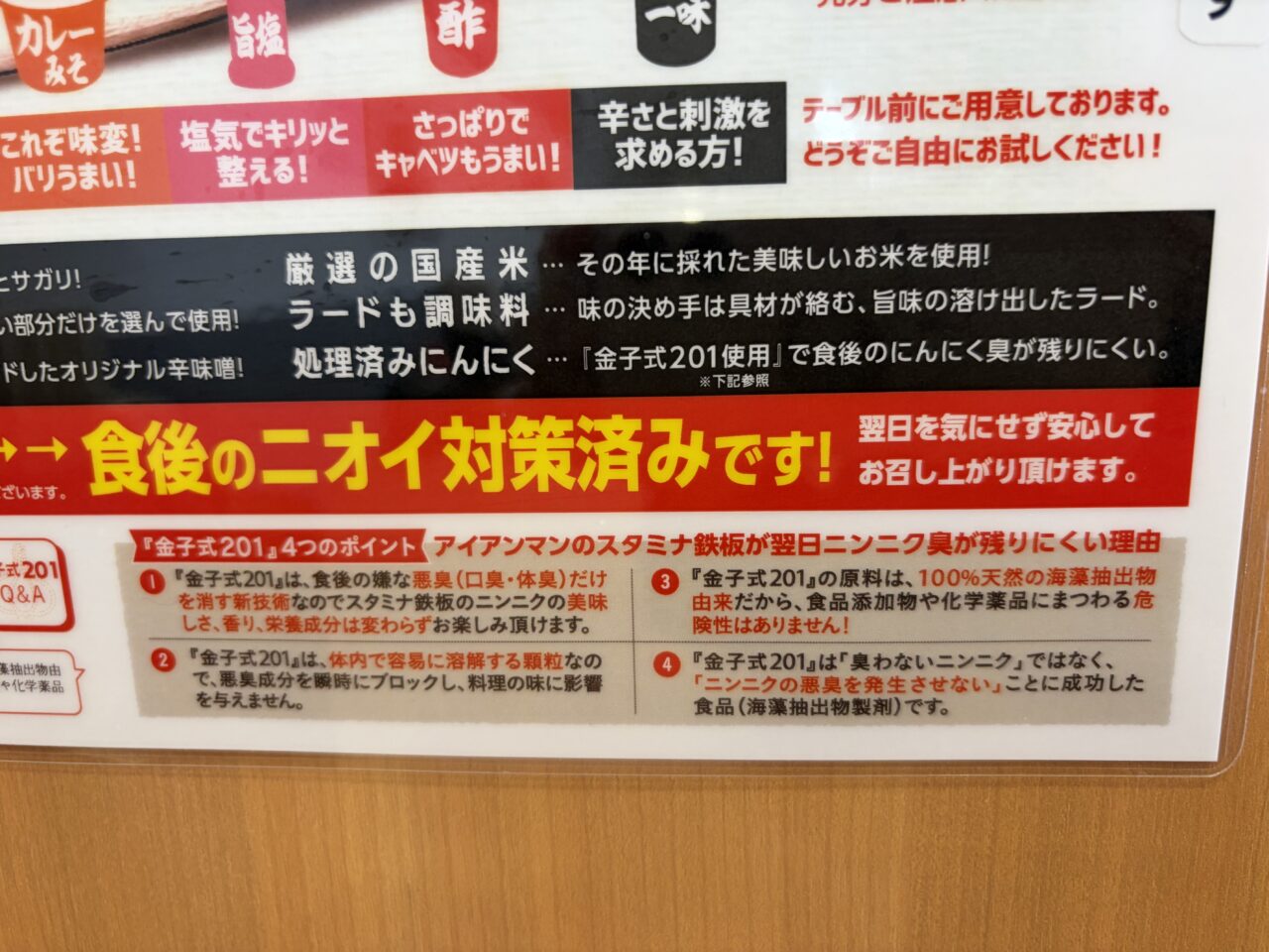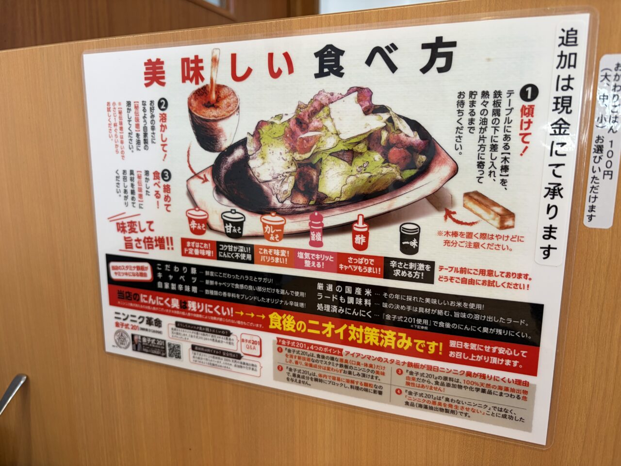 スタミナ鉄板が初めてという方でも安心して食べられるように美味しい食べ方の説明書きも。