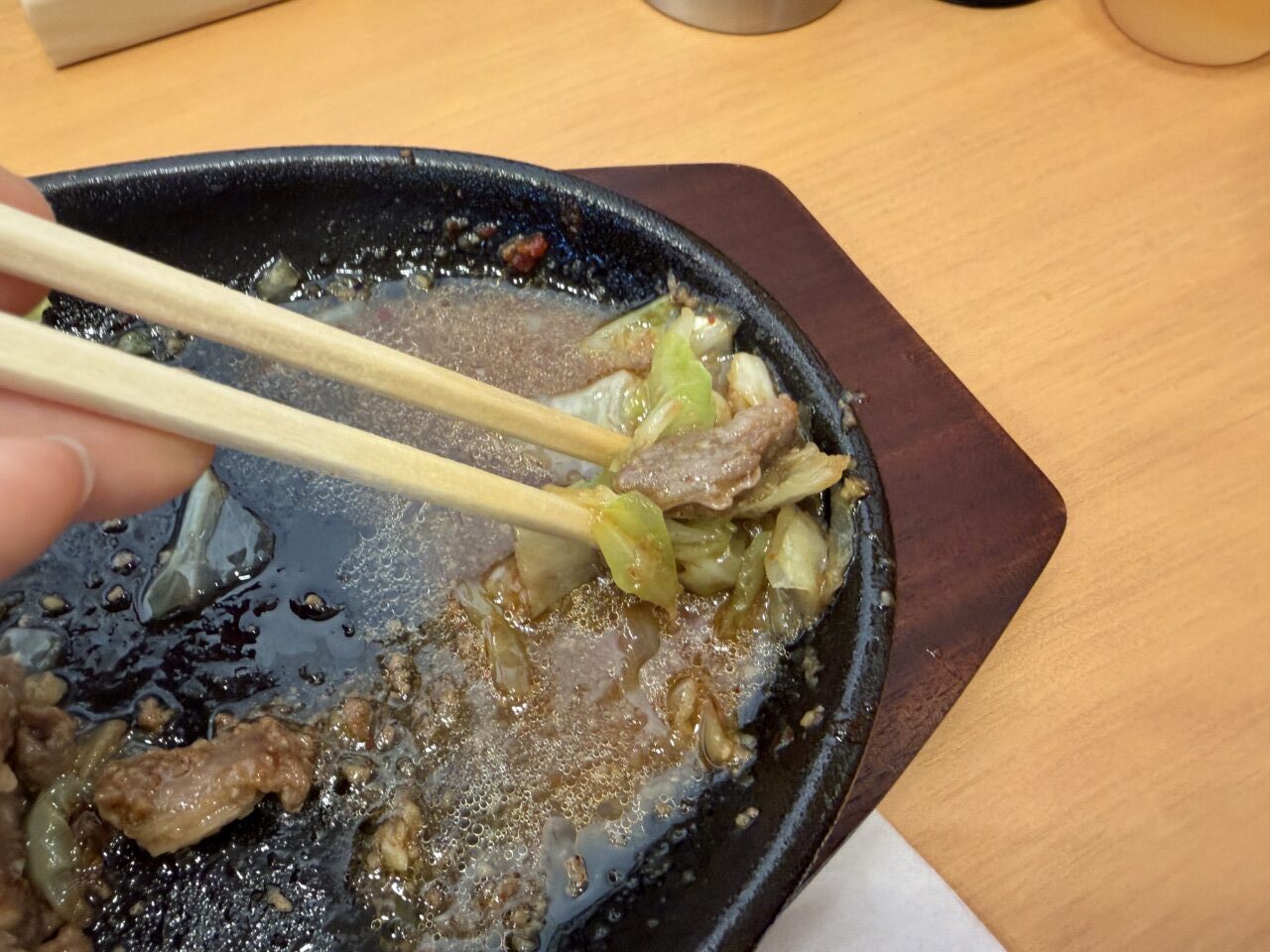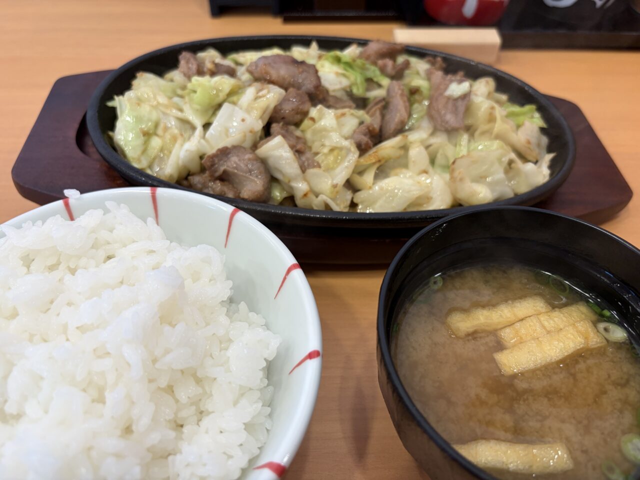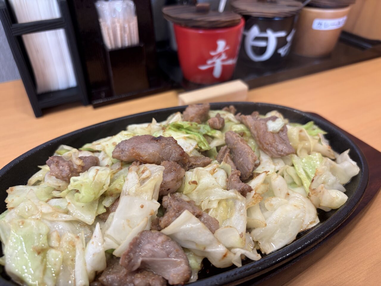 出来立てのスタミナ鉄板。普通盛りにしましたが、キャベツとお肉のバランスも良く、ちょうどいい。