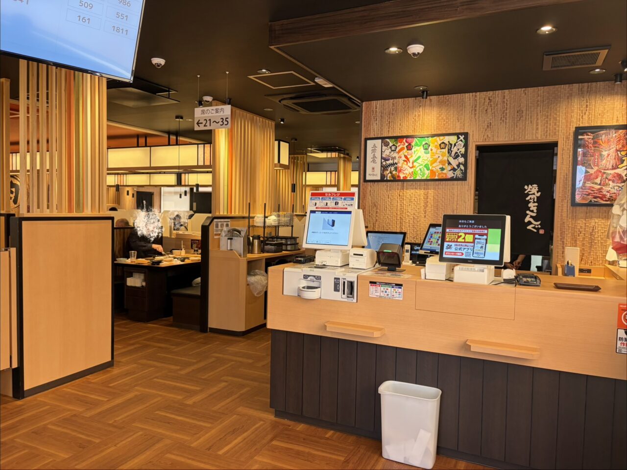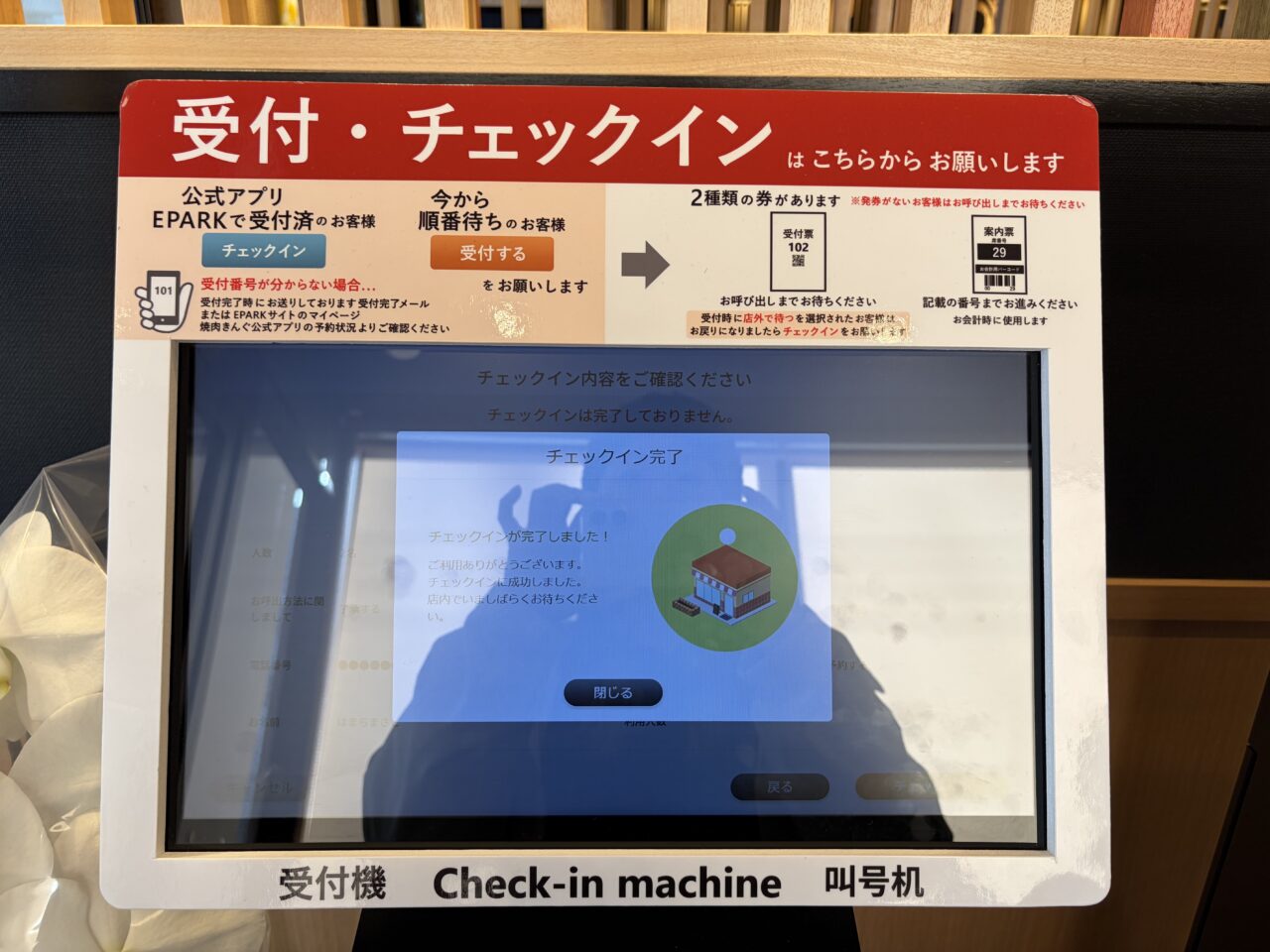 事前に公式アプリより予約ができるので、番号を取得してからお店に行くとスムーズです。案内板に自分の予約番号が表示されるとバーコードがついたレシートが発行されて、そこにテーブルナンバーが記載されているので、そのテーブルへ行きます。