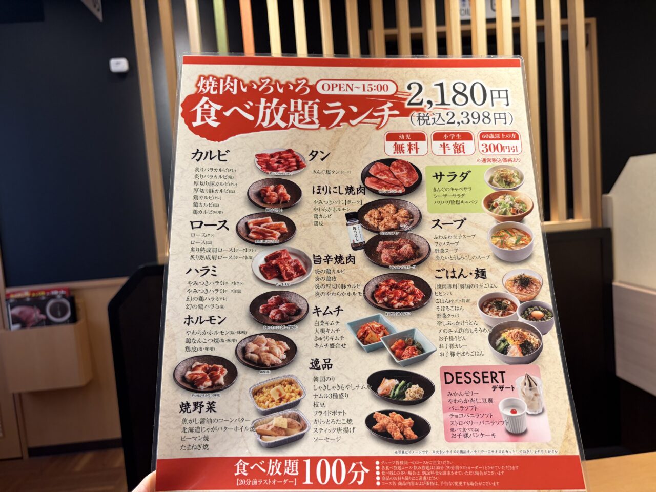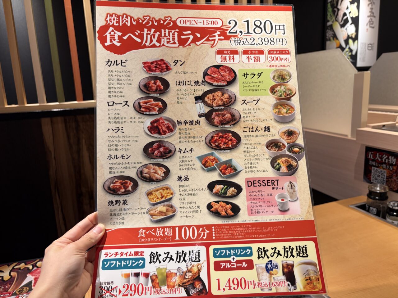 ランチタイムは超お得!2000円台で焼肉食べ放題が叶います。しかも未就学児は無料!!