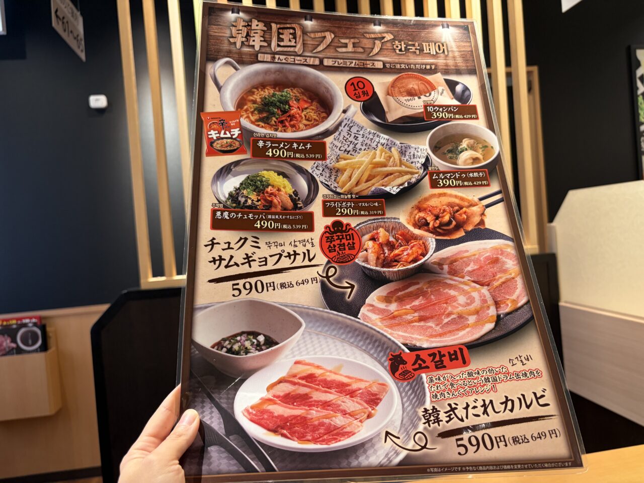 きんぐコース以上で楽しめるメニューで韓国フェアが開催中でした。(単品で注文もできます)