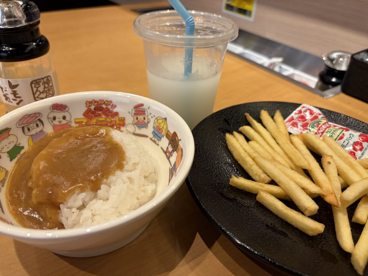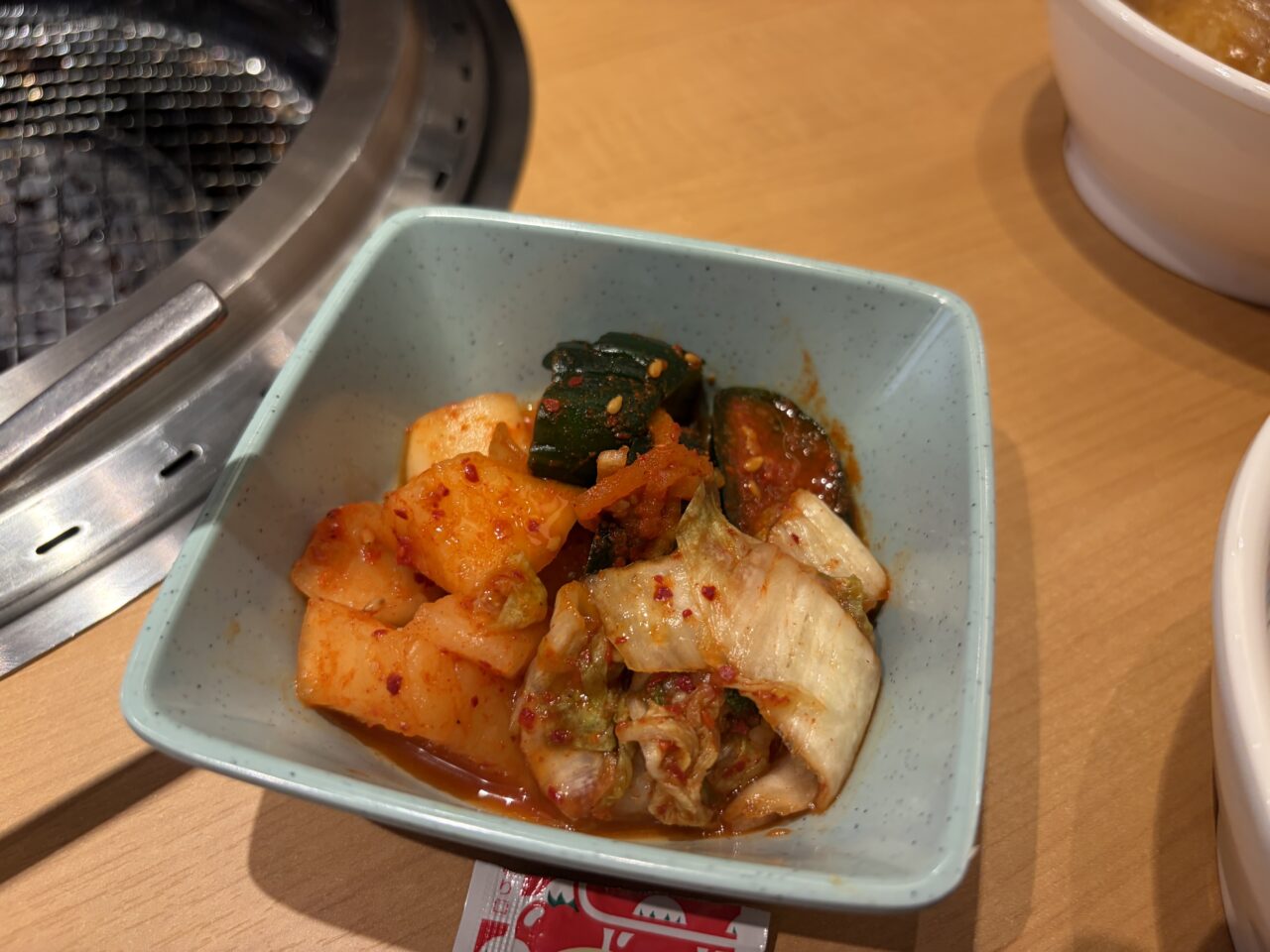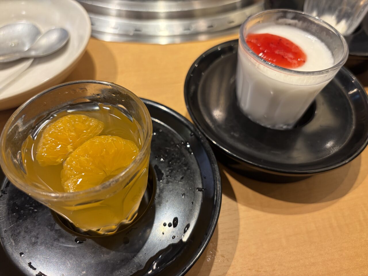 キムチ盛合わせも食べ放題。焼肉との相性抜群です。未就学児無料なのに未就学児が喜ぶメニューが豊富。子連れにとっても優しいお店です。韓国のりも食べ放題。これまた嬉しい。ちょっと網が汚れてきたな~っと思っていると透かさずスタッフが「網交換いかがですか」と声をかけてくれました。タイミングが絶妙すぎて感動です。綺麗になった網でまたお肉を楽しめます。アウトドアスパイスで有名なほりにしをふりかけたお肉もあったのでオーダー。ほりにしがたっぷりかかっています。良い感じに焼けました。お肉も柔らかくてほりにしが良い味を出していました。スープも飲み放題。優しいスープの味が箸休めにぴったりです。ほっとする一杯でした。最後はデザート。ソフトクリーム。みかんゼリーと杏仁豆腐をぺろりと平らげました。お腹いっぱいお肉を食べたはずなのにデザートは別腹ですね。