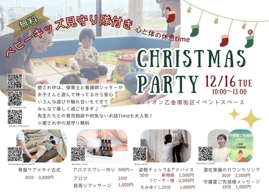 【大野城市】クリスマスイベントまとめ♪ワークショップやサンタさんが来るイベントも?癒し隊のクリスマスパーティーではお子様向けも♪もちろんベビーキッズ見守り隊がいるので心と体の休息タイム。