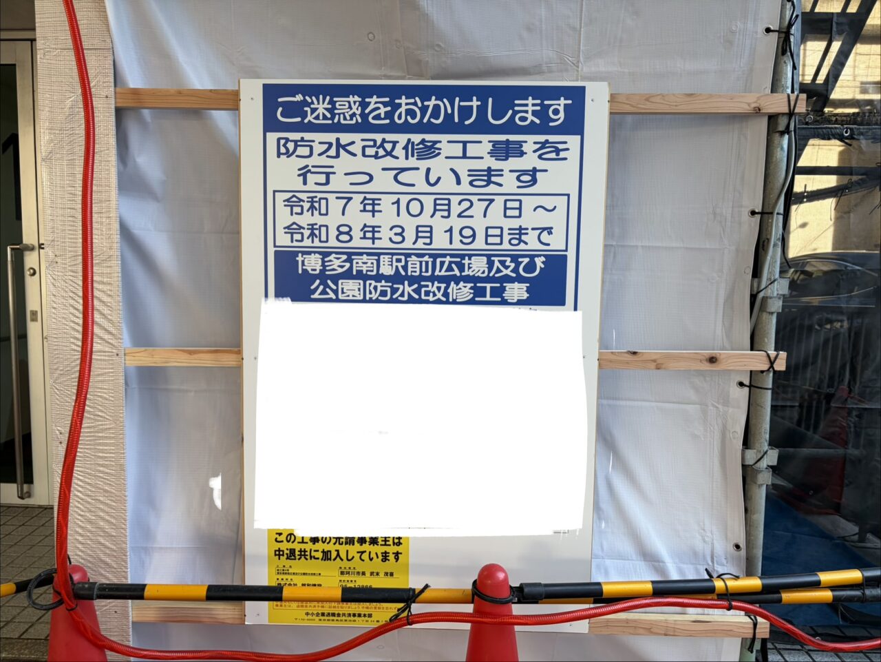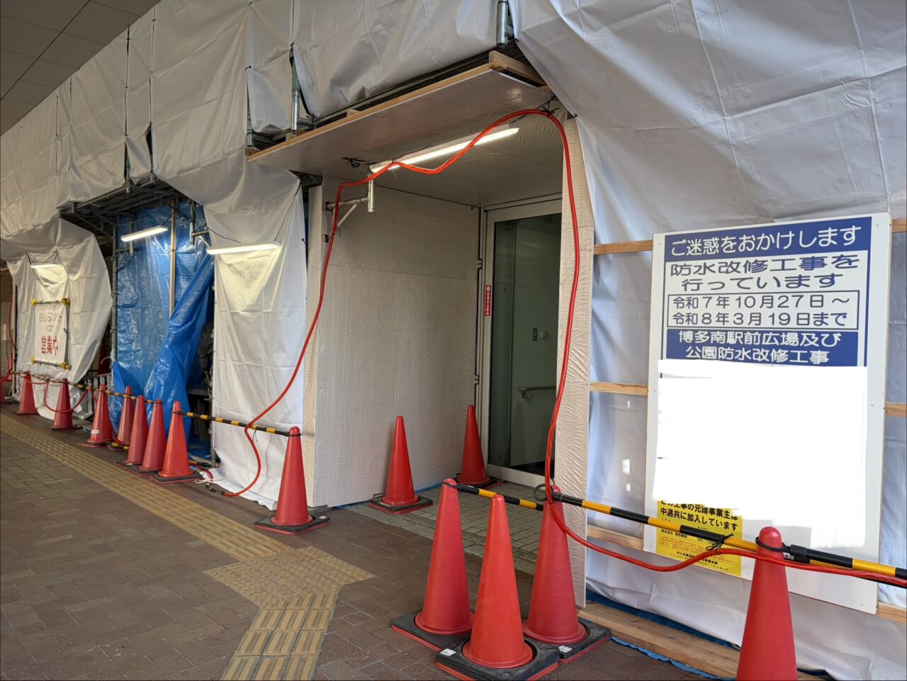 【那珂川市】博多南駅の老舗うどん屋さんが閉店していました。駅ビルは防水改修工事が行われています。