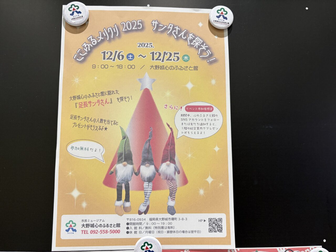クリスマスシーズンもぜひ大野城心のふるさと館で楽しんでみて下さいね。
