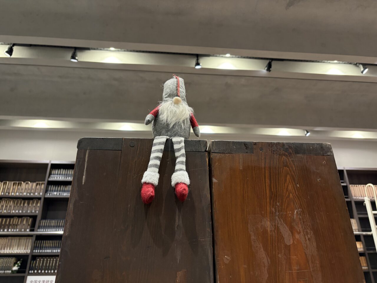 子供たちは毎年この足長サンタを見つけるイベントを楽しみに来館します。