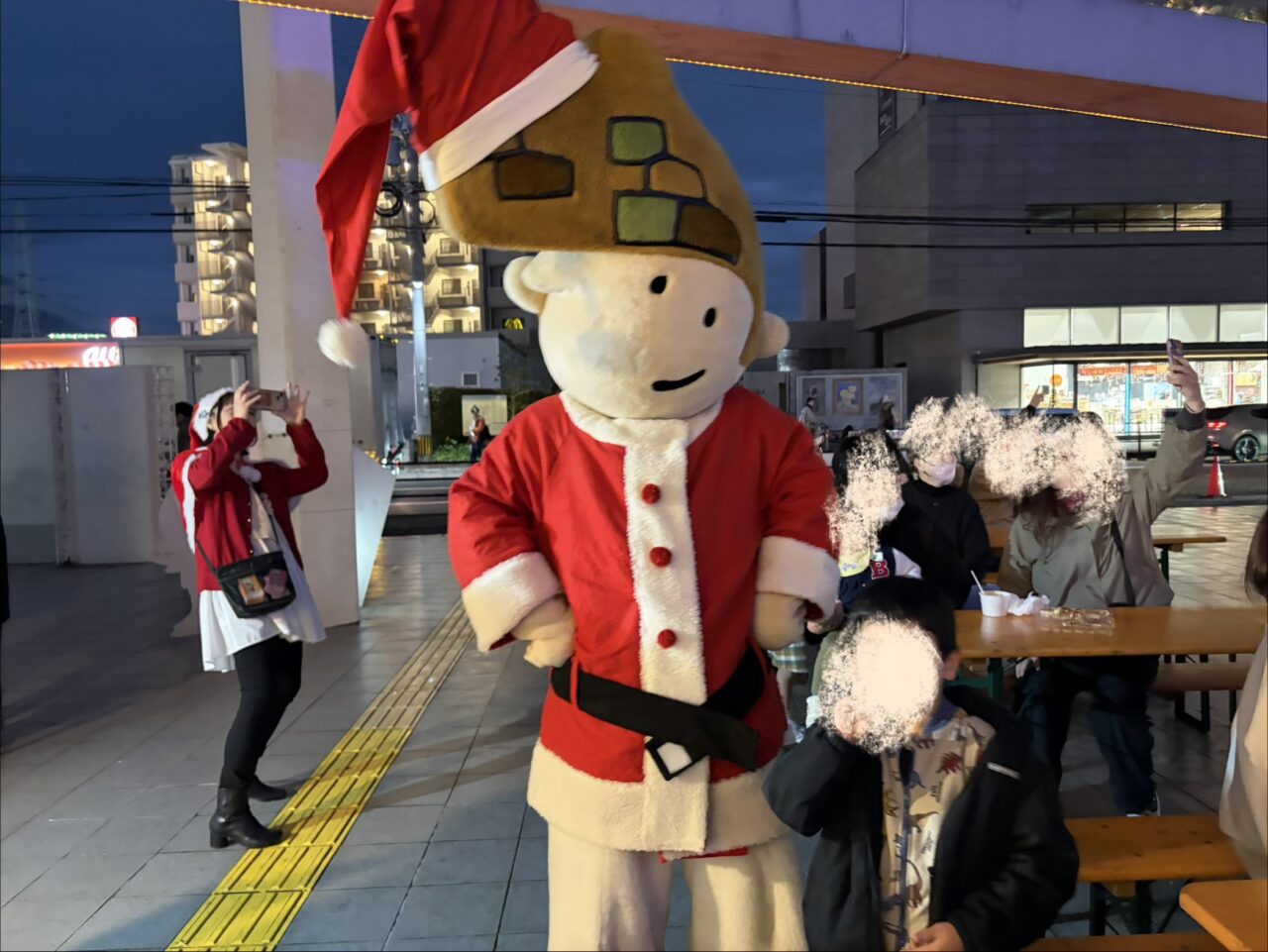 大野城市の大人気キャラクターの大野ジョー君もサンタさんの格好をして現れて一緒に写真を撮ってくれました。