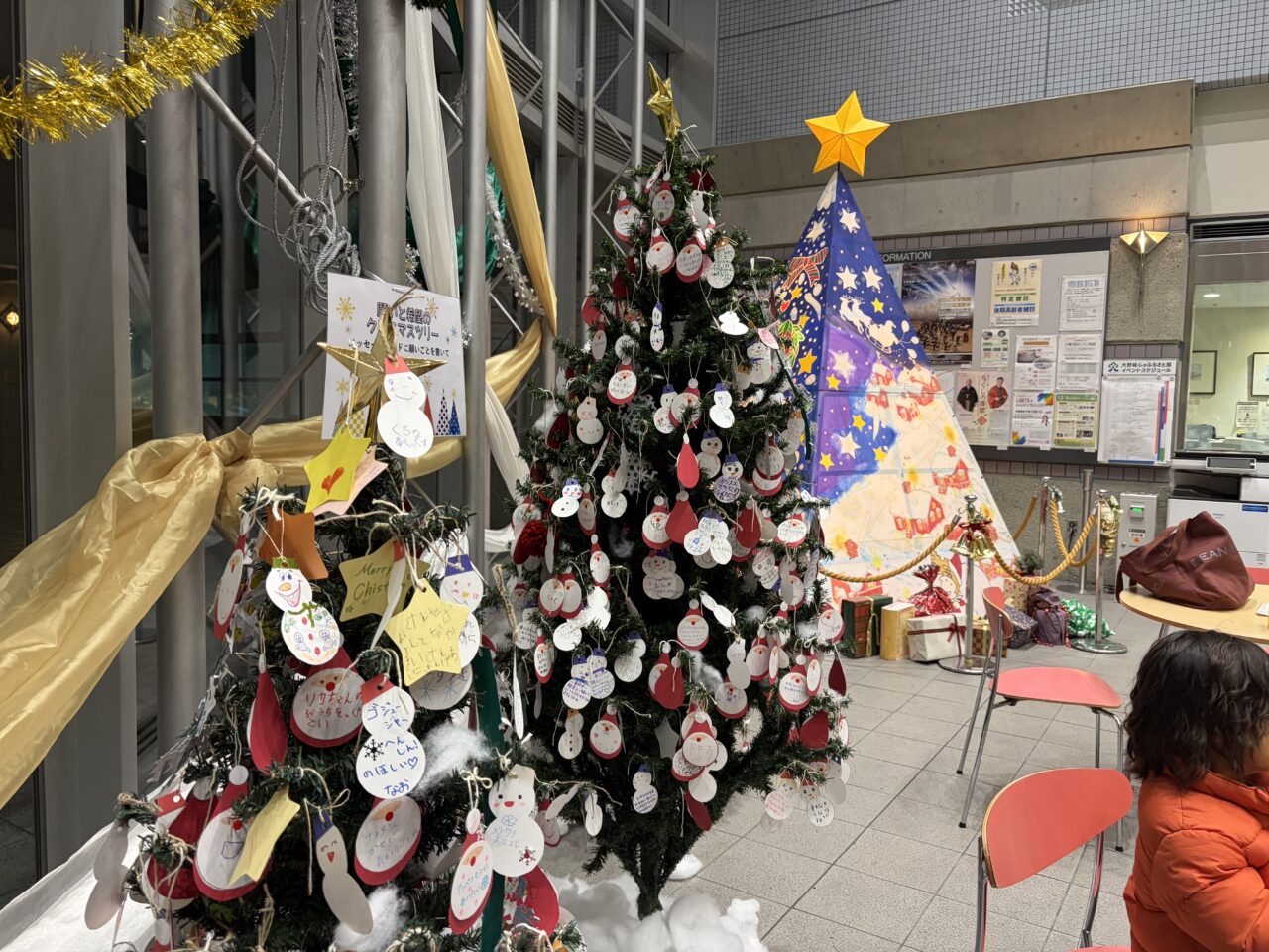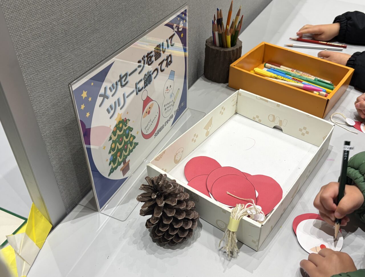 まどかぴあの中にはメッセージを書いてツリーに飾ってねというコーナーがあり、子供たちが楽しそうに顔を描いたりメッセージを書いて楽しんでいました。