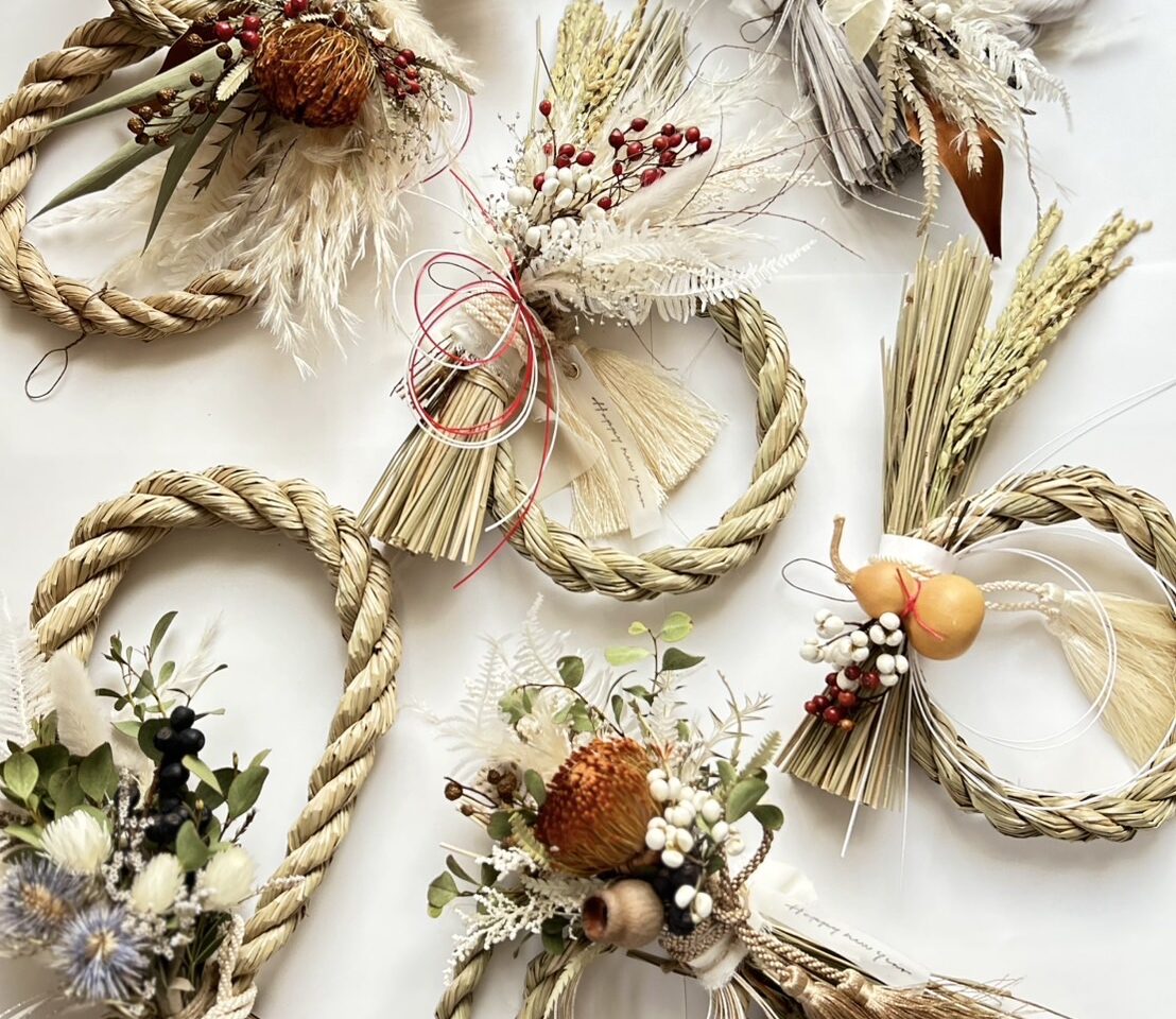 お正月前には欠かせないしめ飾り。一点物のハンドメイドでおしゃれなデザイン。