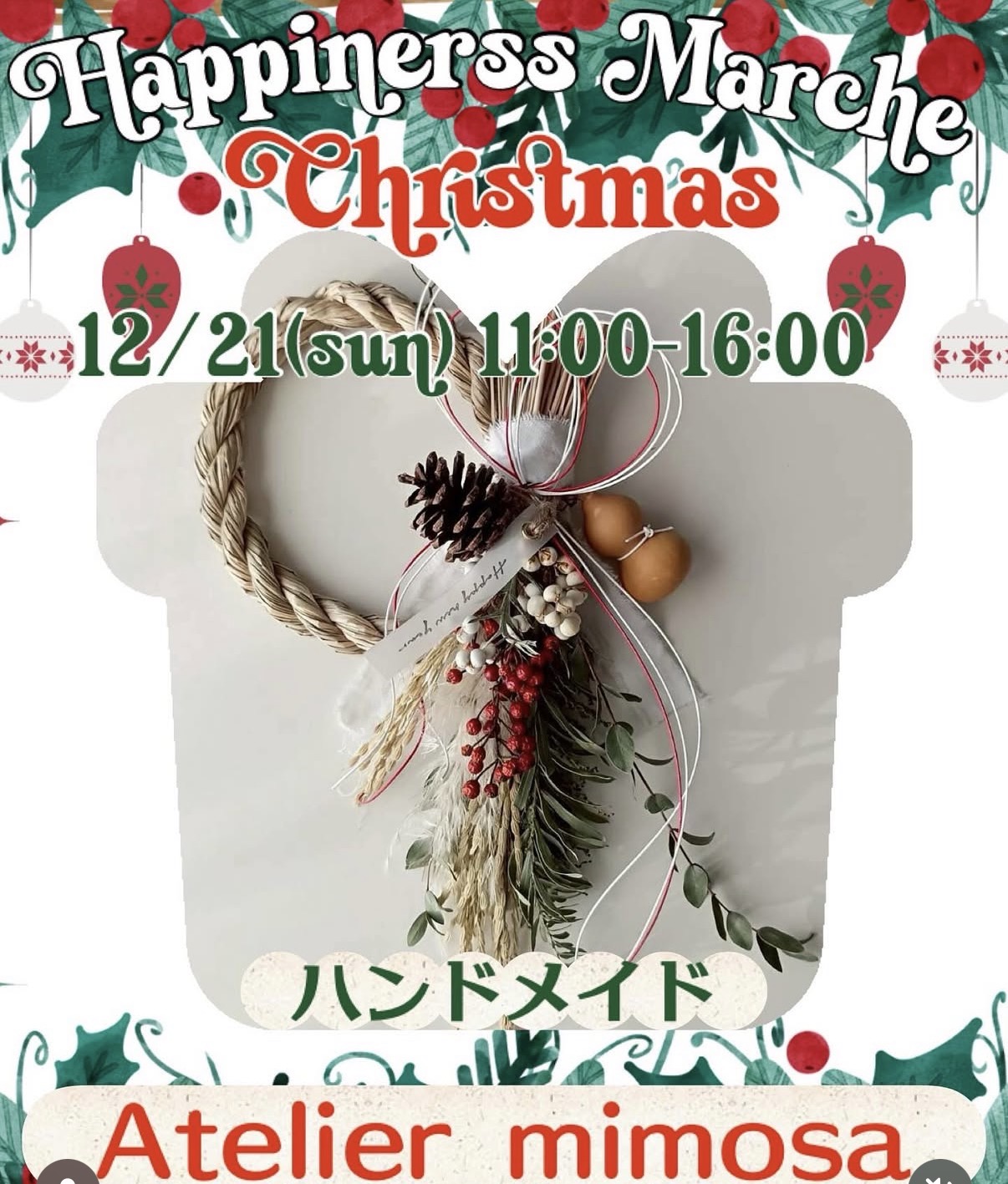 【春日市】Happiness マルシェ クリスマスが12月21日開催。ハンドメイドの一点物が販売されます。世界に一つだけのしめ飾りで新年を迎えたら運気も上がりそう♪