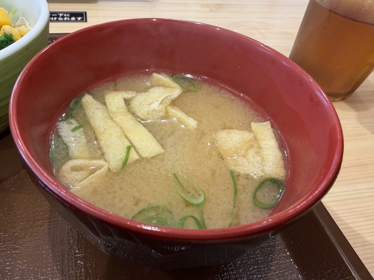 揚げが良い味を出していて美味しいお味噌汁。牛丼と共にいただきホッとする味でした。