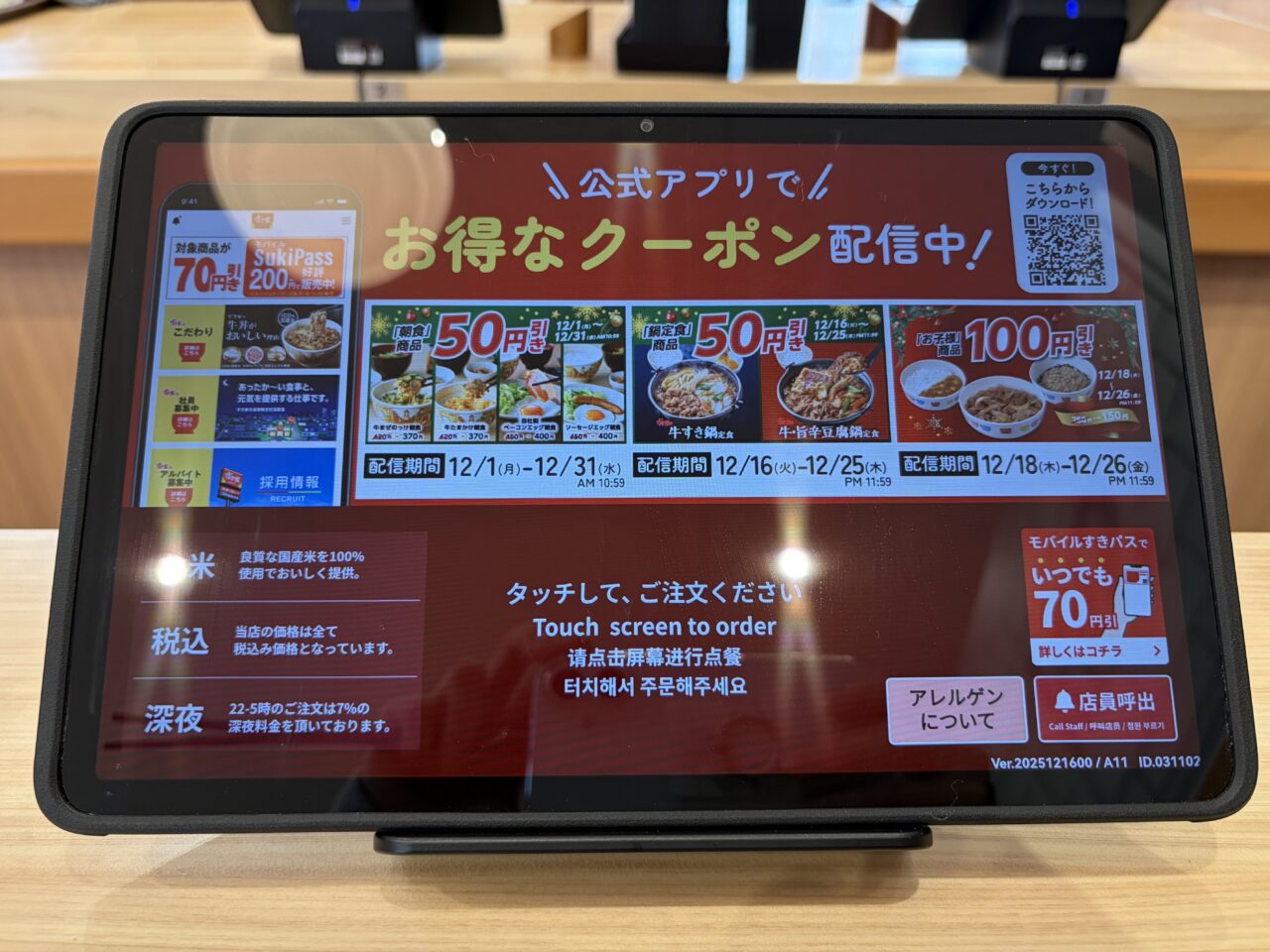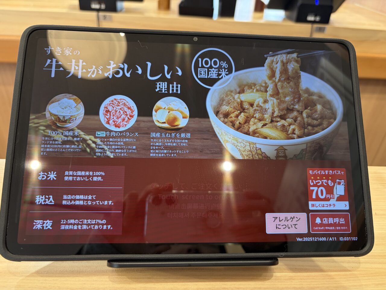 こだわりたっぷりすき家の牛丼のおいしさの理由がタブレットで流れてきました。