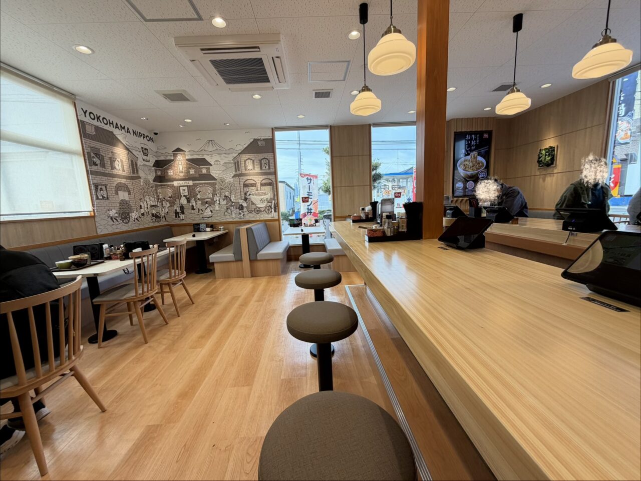 店内入るとすぐ中央にカウンター席が11席ほど並び、そこを囲むようにテーブル席が並んでいます。