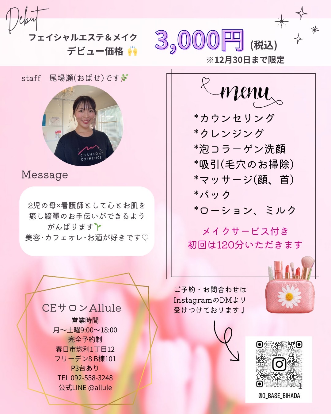 続けることで肌の調子が変わったという声が多数届いているとのことです♪デビュー割は2025年12月30日までになりますが、公式InstagramでDMで相談・予約ができるので、気になる方はぜひ、連絡してみてくださいね♪
