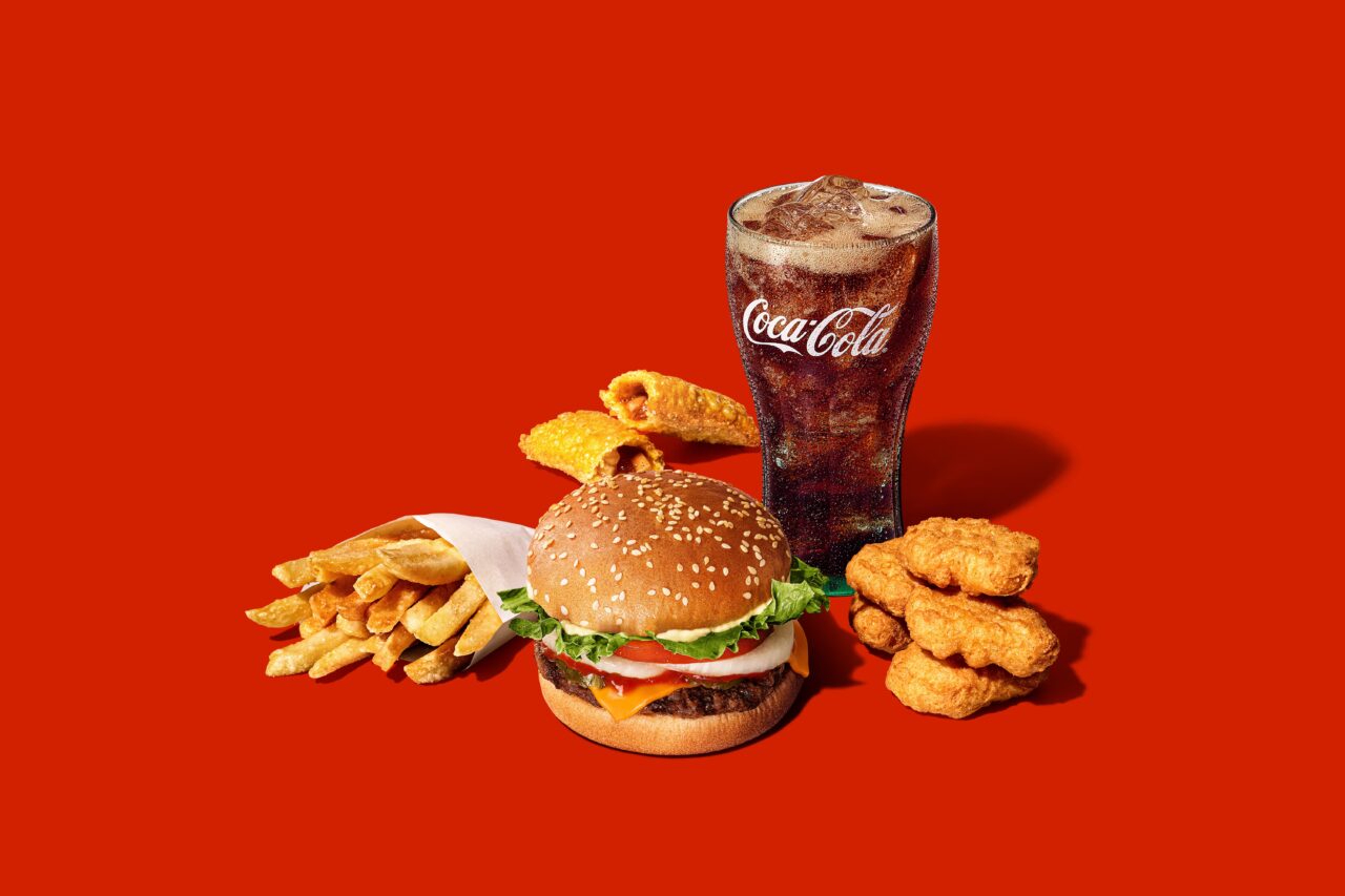 このセットマジで最強です!バーガー+フレンチフライSサイズ+ドリンクMサイズ+アップルパイ+チキンナゲット(5ピース)のセットがまさかの850円!!