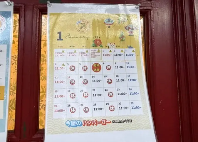 今屋のハンバーガー 大野城わかくさ店は平野神社からも近いので、ぜひ、初詣の帰りによって食べて行ってください。