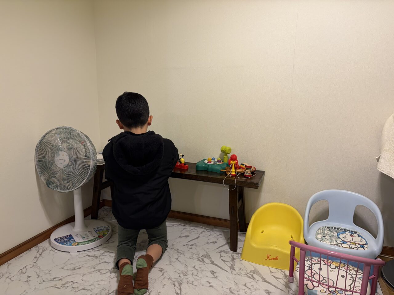 そして、もう一つ変わった点があります。カウンター席前の小上がりにキッズスペースが出来ています。