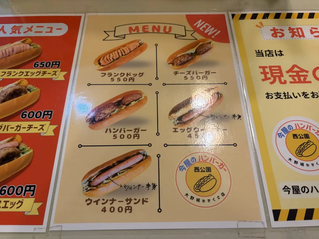 その他、人気の手ごねハンバーグが挟まれたハンバーガーとチーズバーガー、フランクドッグと人気メニューのシンプルバージョンで500円台と価格が抑えられたメニュー。