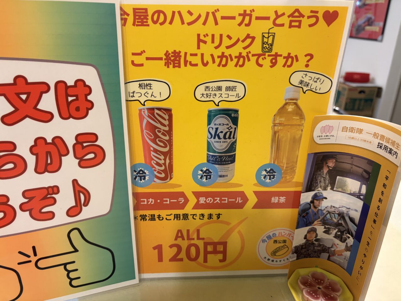 イートインのご利用はワンドリンク制となっていますので、飲み物のご注文もお忘れなく♪ハンバーガーと炭酸ドリンクはよく合いますよね。