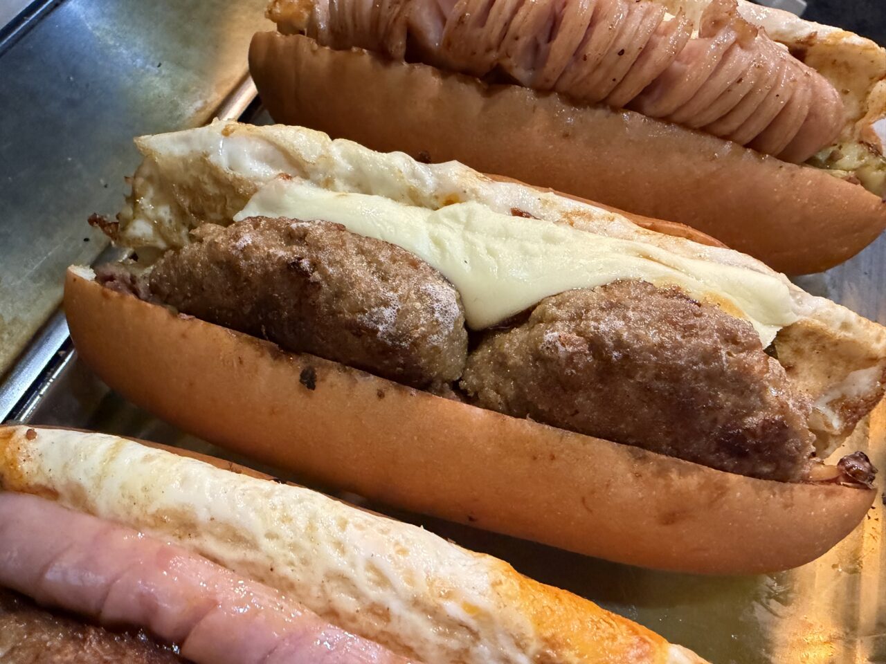 大きなフランクが真ん中にど~んとのってチーズと玉子との相性が最高です。